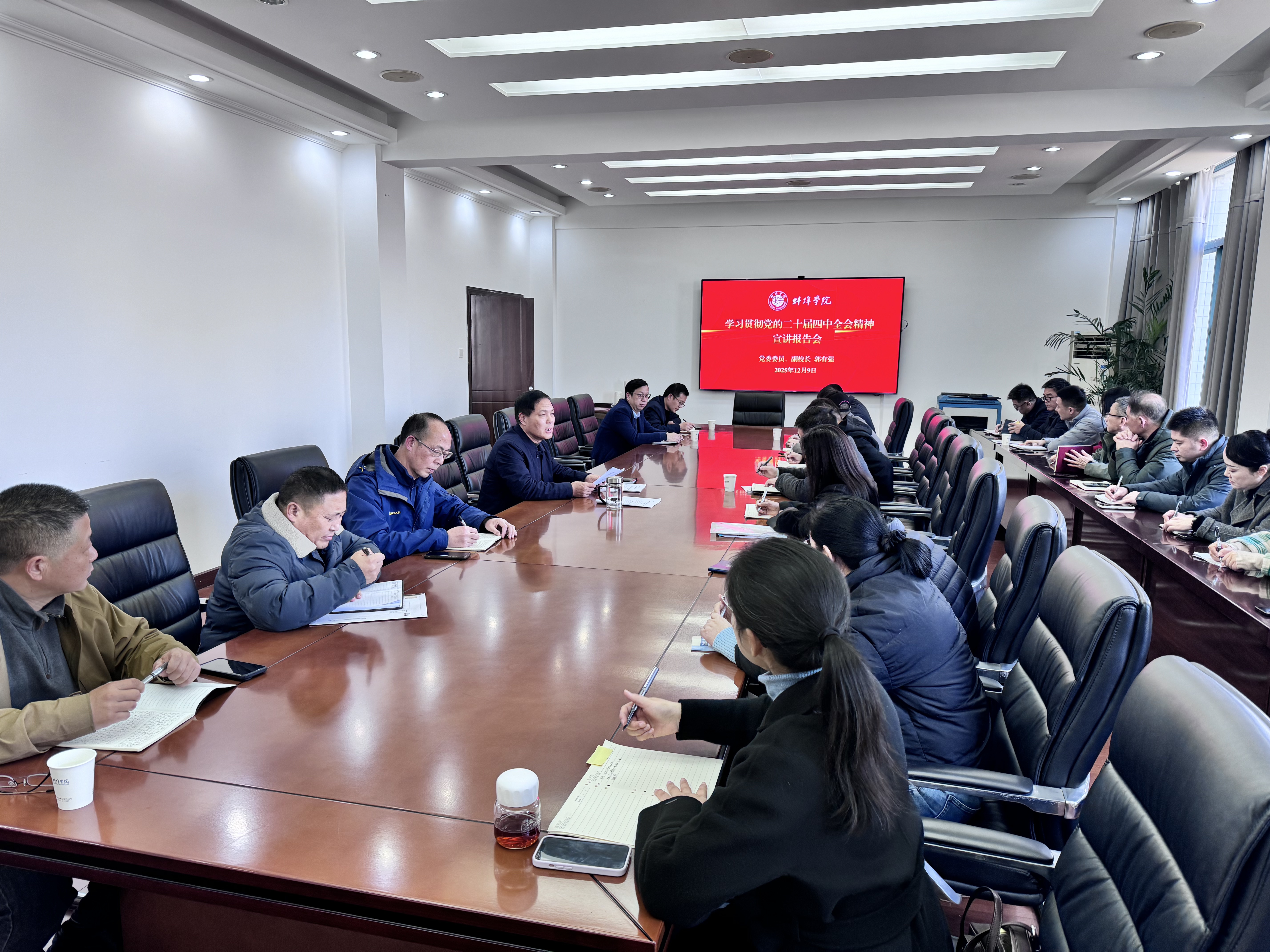 12月8日下午,校党委委员、副校长张尔桂在行政楼视频会议室为教务处、教学质量监控办公室、财务处、国有资产管理处等全体人员宣讲党的二十届四中全会精神。张尔桂从深刻领会党的二十届四中全会的重大意义开篇,阐述了大会召开的历史背景、主要内容和重大意义,并就“十四五”时期我国在经济、政治、文化、科技等十二个方面取得的重大成就以及“十五五”时期我国在基本实现社会主义现代化进程中的重要地位和指导方针、主要目标、战...