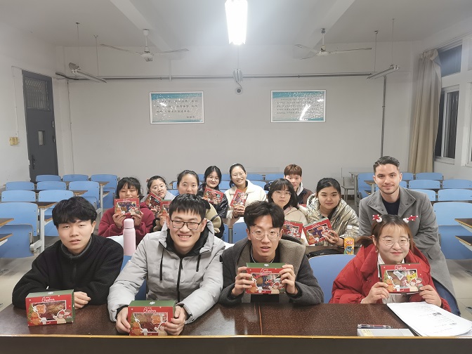 Lengyel Bence和Yang-Lovas Krisztina两位老师为同学们亲手准备了很多份礼物。Lengyel老师,更是亲手制作了1000份匈牙利特色小食gingerbread,并按照匈牙利人的传统,给礼物进行了精美的包装。按照疫情防疫要求,避免过多的人群聚集,两位老师共举办了四场节日活动,使更多学生能够亲身体会到独特的匈牙利节日文化氛围。精美的图片、有趣的互动、还有心意满满的礼物,给同学们留下了愉快又难忘的回忆。