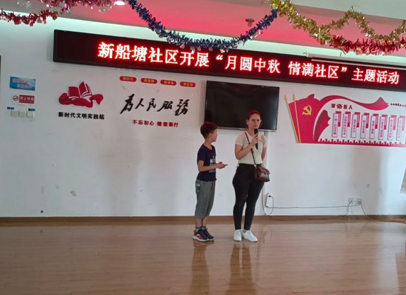 9月9日下午,应蚌埠市外办邀请,pg娱乐两位外籍教师Rauntenbach Diedrich Roelof和Yang-Lovas Krisztina走进了蚌埠市新船塘社区,参加了社区与蚌埠市外办共同举办的“月满中秋,情满社区”主题活动。