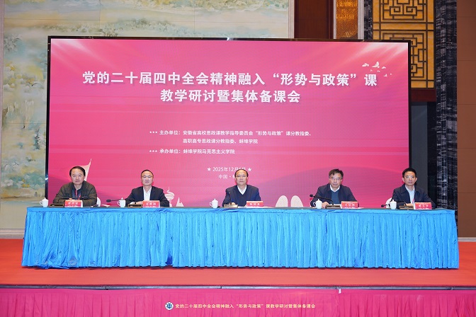 在全国上下深入学习贯彻党的二十届四中全会精神、科学谋划“十五五”发展的关键节点,12月6日,党的二十届四中全会精神融入“形势与政策”课教学研讨暨集体备课会在蚌埠市举行。本次会议以“深入学习贯彻党的二十届四中全会精神,推动‘形势与政策’课高质量发展”为主题,由省高校思政课教指委“形势与政策”分教指委、高职高专思政课分教指委与pg娱乐电子游戏官网入口联合主办,pg娱乐电子游戏官网入口马克思主义学院承办。全省近百所高校的马克思主义学院负责人、“形势与政策”课教学机构负责人、骨干教师等200多人齐聚淮河之畔,共探“形势与政策”课改革创新路径。