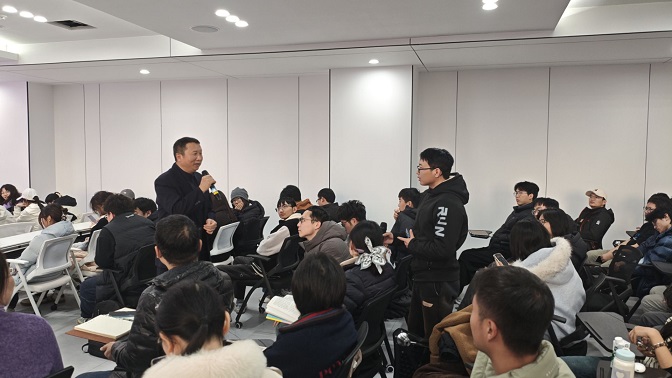 宣讲后的交流互动环节,气氛热烈活跃。面对学生“企业是否有特别困难的时期,如何渡过”的提问,陈荡坦诚回应:“企业发展中遇到困难是常态,关键在于保持韧性、迂回前行。我们始终坚持每天一小步的积累,以持续的进步突破困境、跨越难关。”针对“企业如何规避风险”的疑问,他表示:“每个人对风险的理解不同,既要理性看待风险,不因畏惧而停滞不前,也不能盲目冒进,要在风险与机遇之间找到平衡,以稳健创新推动企业高质量发展。”其务实通透的解答,为学生们在职业规划与人生发展方面提供了宝贵启示。