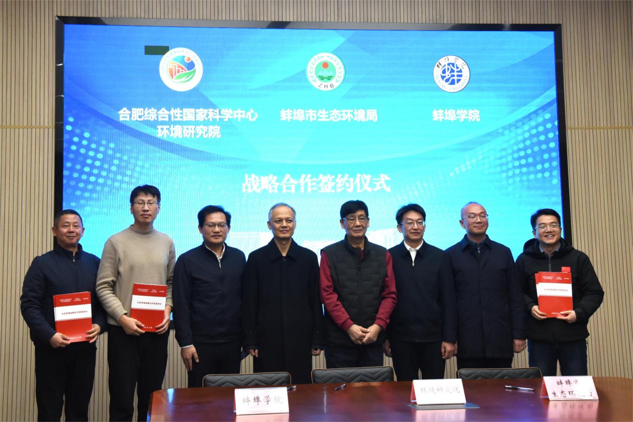 1月4日上午,合肥综合性国家科学中心环境研究院、蚌埠市生态环境局、pg娱乐电子游戏官网入口生态环境战略合作框架协议在合肥综合性国家科学中心环境研究院正式签署。中国工程院院士、环境研究院科技委主任刘文清,安徽省生态环境厅副厅长、一级巡视员罗宏,pg娱乐电子游戏官网入口校长张亚新,蚌埠市生态环境局党组书记、局长陈伟出席仪式并致辞。党委委员、纪委书记、监察专员杨安成及有关部门、学院主要负责同志见证了签约仪式。