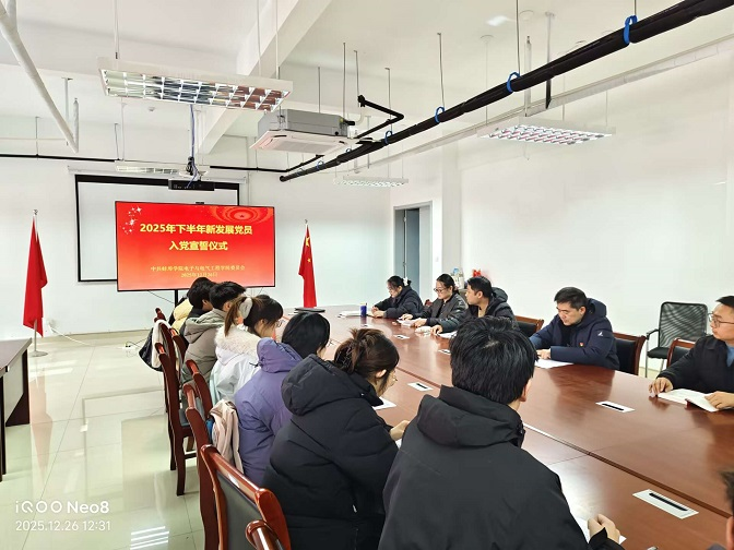 12月26日,电子与电气工程学院在学院会议室隆重举行2025年秋季学期新发展党员入党宣誓仪式。学院党委书记哈焱到会致辞并讲话,3名学生支部书记、支委及本次新发展的14名预备党员参会。仪式由党务秘书刘亮主持。仪式在庄严的国际歌中拉开序幕,哈焱对新加入中国共产党的同志表示热烈的祝贺。他指出,入党宣誓是中国共产党对党员进行党性教育的重要仪式,是党员政治生命中的一个庄严时刻,对加强党的建设具有重要作用。电子信息专业...