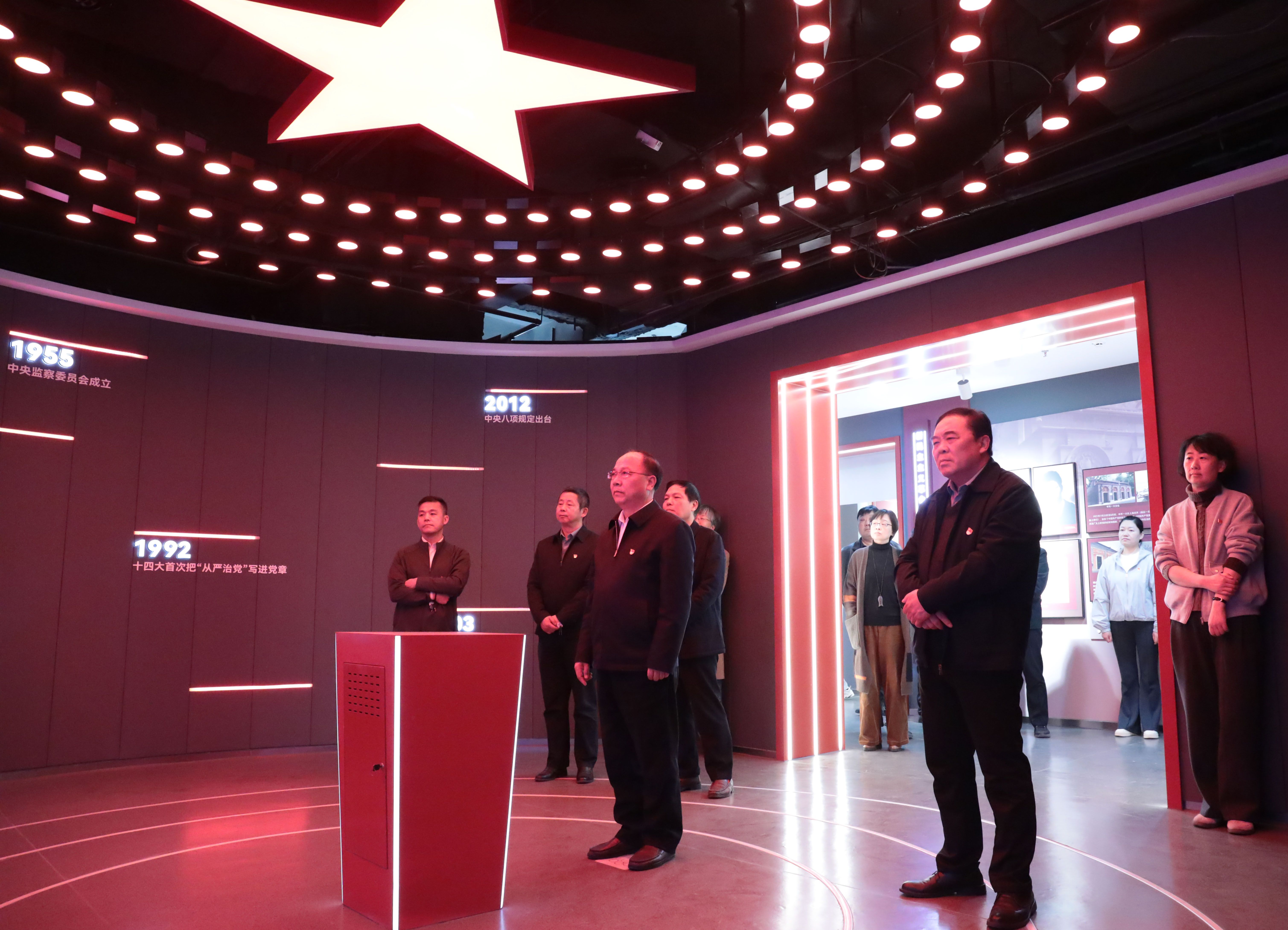 4月1日下午,读书班学员赴蚌埠市党性(警示)教育基地开展专题教育活动,依次参观了“党性立心·纪法立行”“廉韵淮畔·润泽珠城”“前车之鉴·警钟长鸣”“踔厉奋发·永葆清廉”四个主题展区。通过参观图文影像资料,党员干部们进一步了解了党推进党风廉政建设的历史脉络与制度成果,纷纷表示将常怀敬畏之心,恪守党纪国法底线,永葆清正廉洁政治本色。