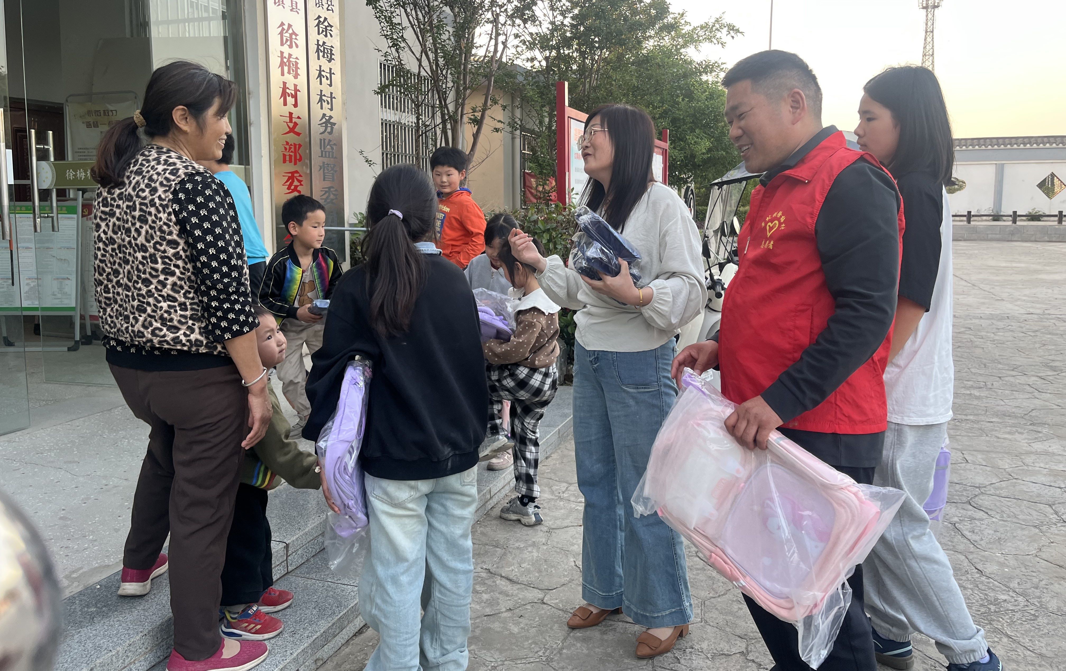 4月25日上午,pg娱乐电子游戏官网入口关工委代表再次走进怀远常坟镇徐梅村,为35名留守学生送上书包文具。这项连续三年的“护苗助学”行动,正通过“五老+青年+云端”三维联动,构建起“扶志+扶智”的特色关爱体系。