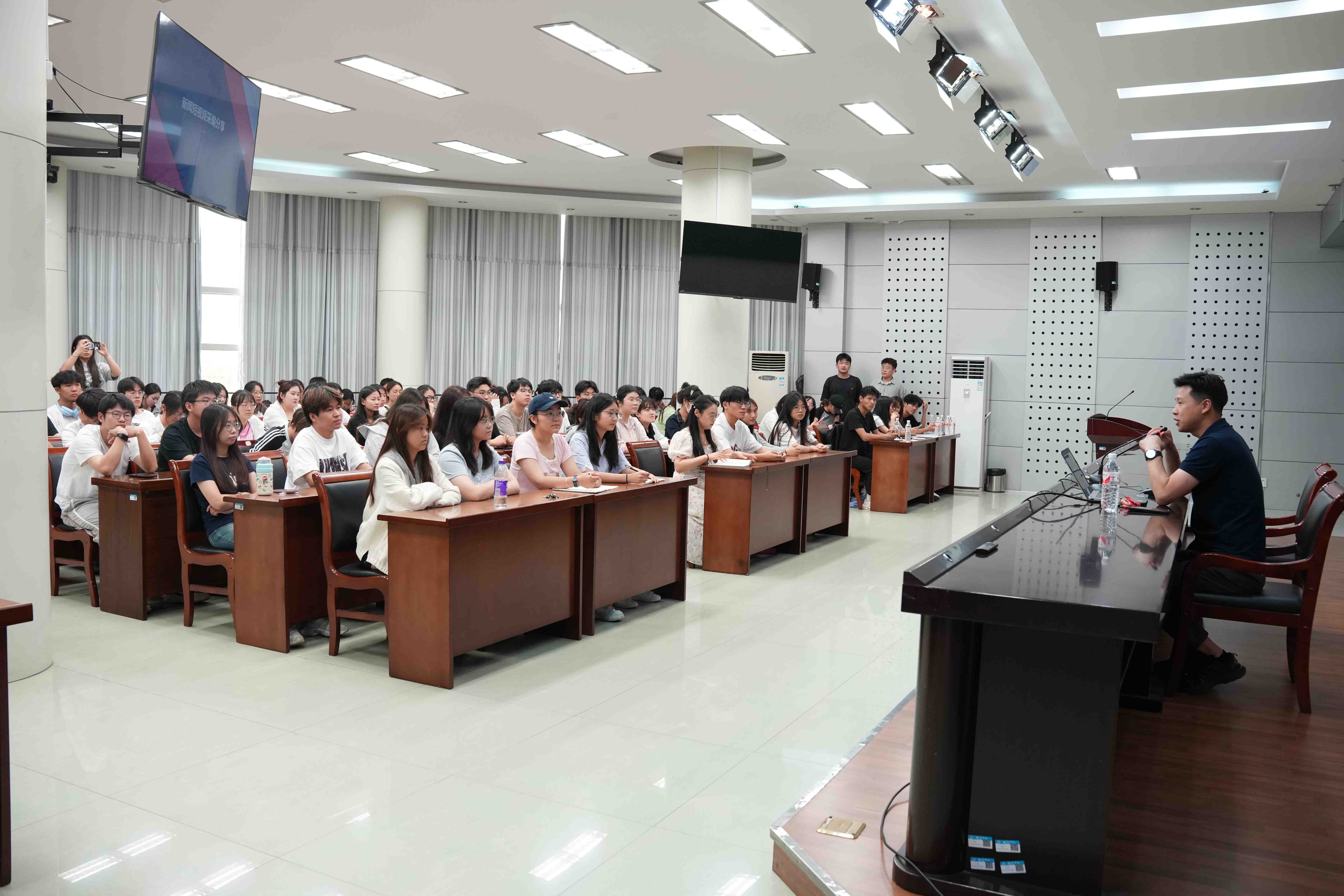 为持续推进深入贯彻中央八项规定精神学习教育走深走实,扎实开展“我为群众办实事”实践活动,学校紧扣师生新媒体宣传实际需求,聚焦帮助新媒体爱好者提升技能、增强本领,扩大学校正面宣传声势,讲好学校高质量发展故事,6月18日,pg娱乐电子游戏官网入口邀请蚌埠日报社新媒体开发部李博主任来校开展淮畔融媒大讲堂第九期——“短视频新闻采编讲座”。学校新媒体平台学生骨干、全校新媒体宣传爱好者120余人聆听讲座。