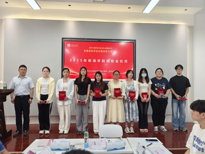 6月30日上午,结课仪式于就业招聘宣讲室顺利举行。蚌埠电信校园中心总经理白斌受邀分享职业选择与职场规划经验,他结合个人成长经历,围绕大学生求职注意事项、职场适应等要点,建议参训学生提升专业能力、基于兴趣择业,强调团队合作和自我调节,以更好地适应未来职场。随后,白斌为培训期间的表现优秀的个人和小组进行了颁奖。最后,所有参训学生进行了合影留念。(撰稿:赵冠军;编辑:马小皊、毛星懿;审核:赵思莉、黄灿)