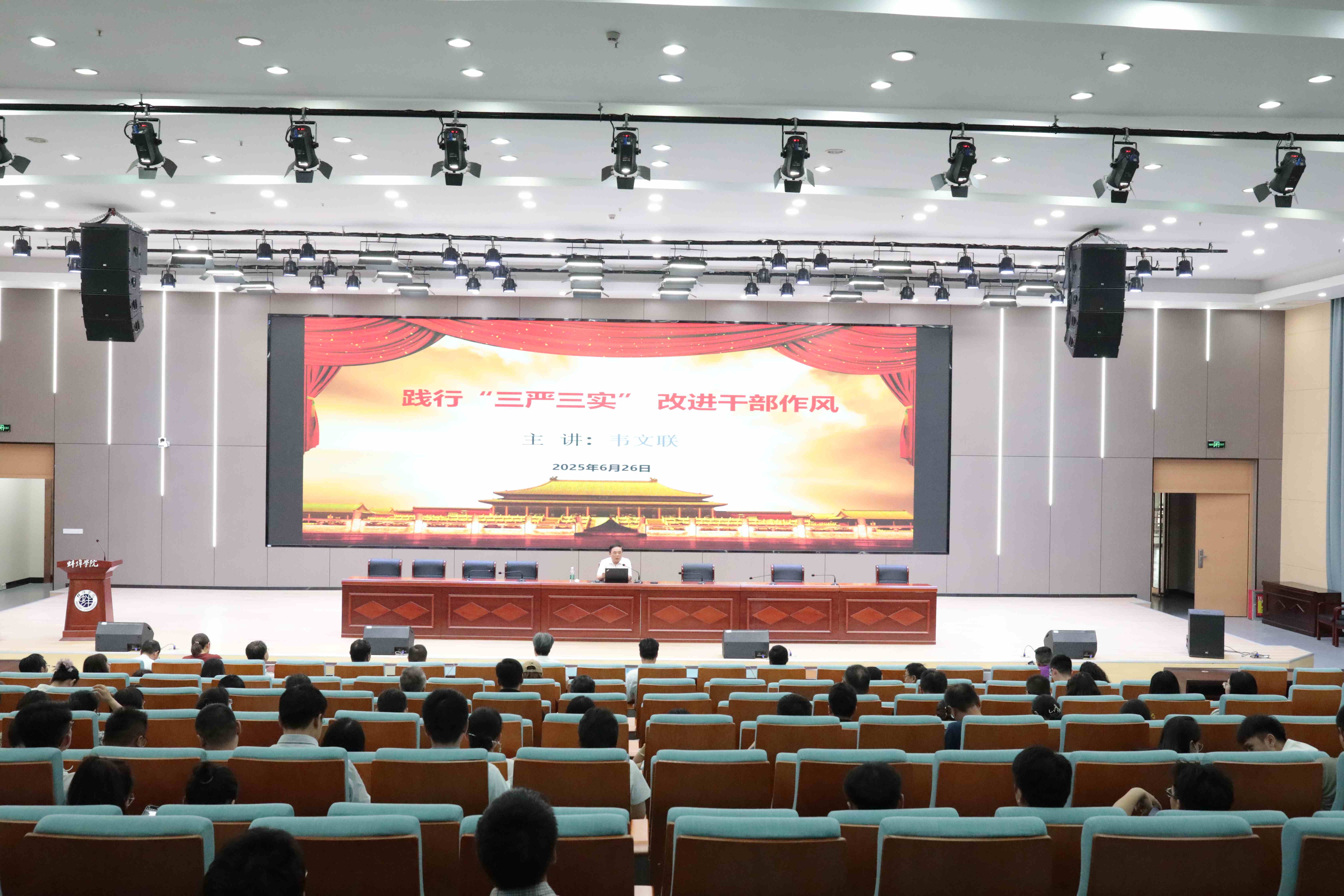 为持续推动中央八项规定精神在校园落地生根,进一步强化党员干部作风建设,6月26日下午,pg娱乐电子游戏官网入口党委副书记韦文联在学术报告厅,以《践行“三严三实” 改进干部作风》为题,讲授了一堂深入贯彻中央八项规定精神学习教育专题党课。分管部门和联系学院党员、干部以及全校辅导员到场聆听。
