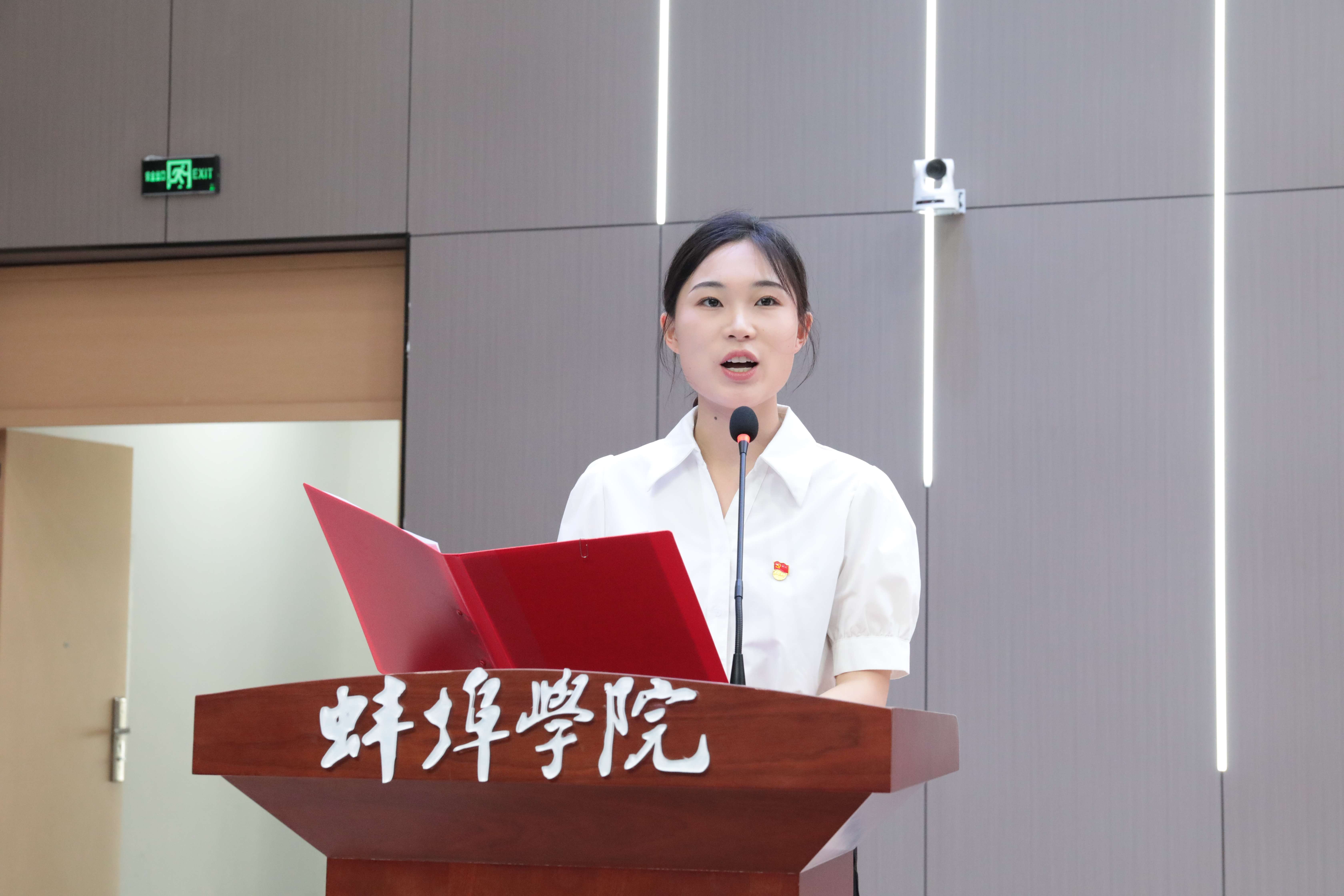 优秀教师党员代表、优秀学生党员代表分别发言,表达了用专业所学履职尽责、践行党员初心使命的坚定决心。