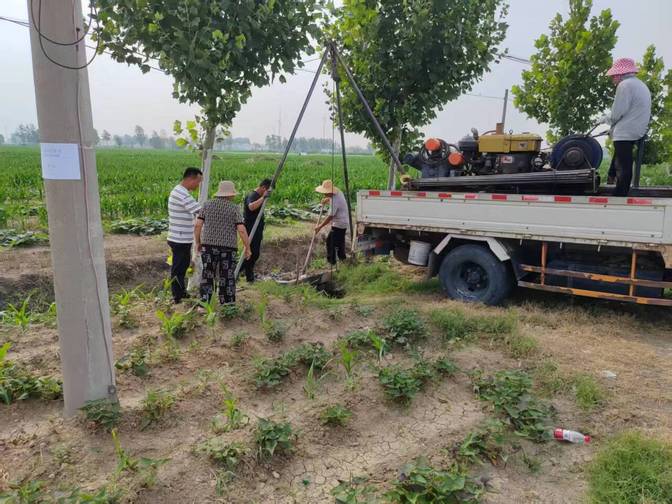 合作确定后代李村村委第一时间组织力量推进洗井抗旱工作。村书记与两委成员牵头协调,筹集资金、联系专业洗井队,同时全程监督施工。洗井现场热火朝天,洗井工人熟练操作设备,将淤积的泥沙清出,村民也自发参与,帮忙搬运设备、清理井周杂物。经过连续奋战,一口口机井恢复清澈,汩汩井水再次润泽干涸土地,为农作物“解渴”,助力粮食稳产保收。