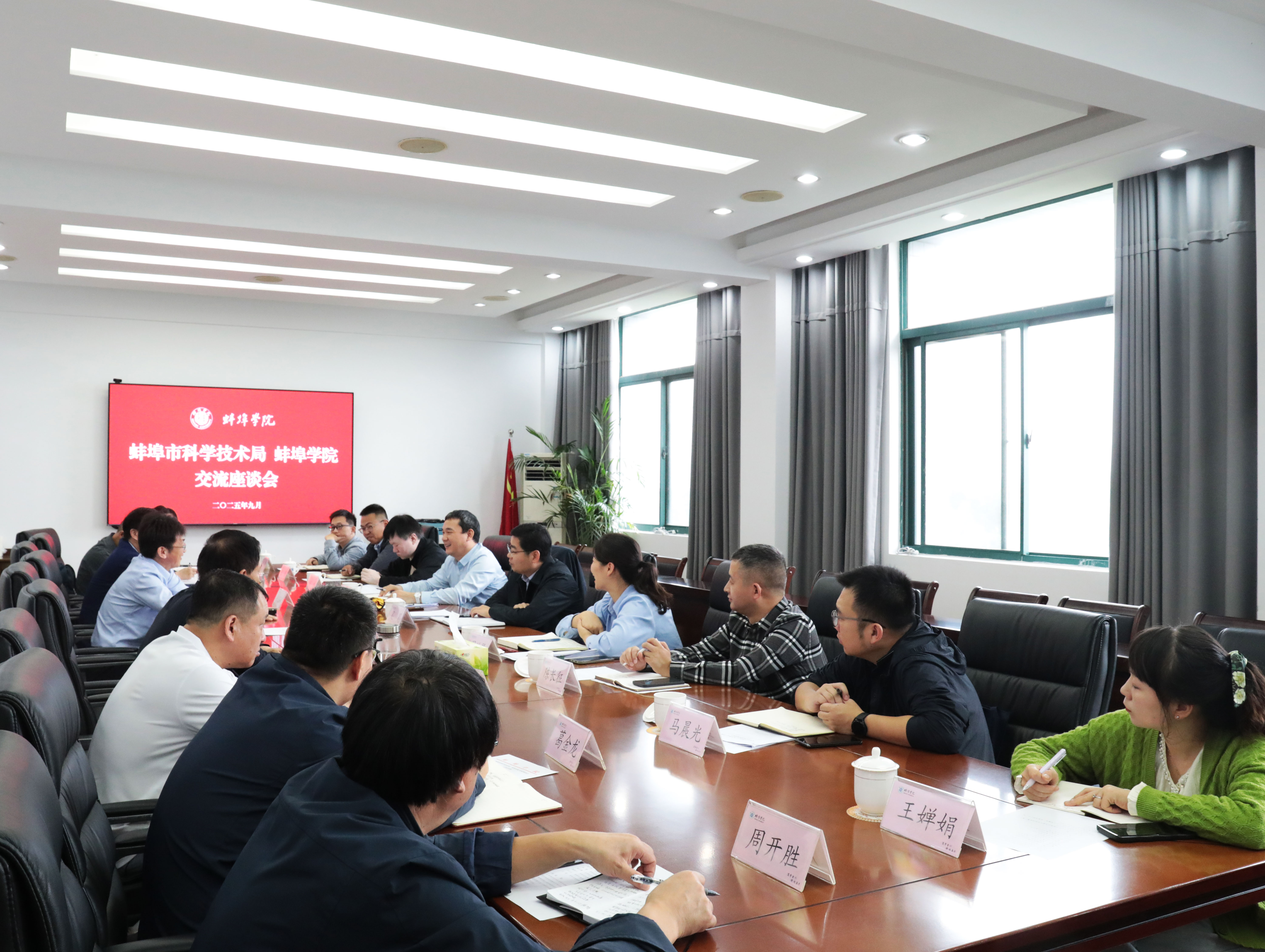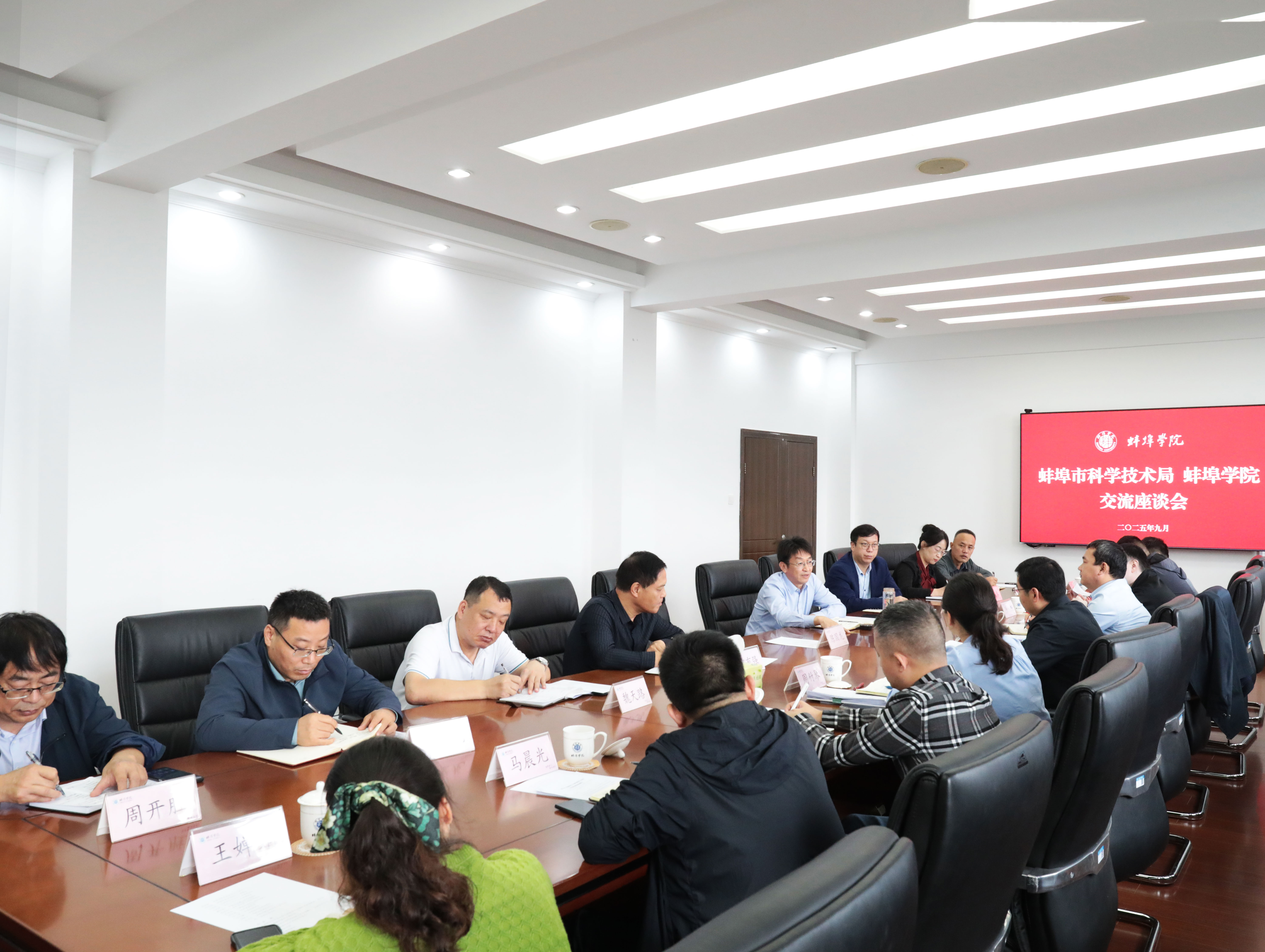 9月29日上午,蚌埠市科学技术局党委书记、局长吴昊一行9人来校开展科研工作专题调研交流。交流座谈会在pg娱乐电子游戏官网入口行政楼4楼第二会议室举行,校长张亚新出席调研座谈会,党委委员、副校长郭有强主持会议,科研处负责人、相关二级学院院长,科研处全体人员参加座谈。