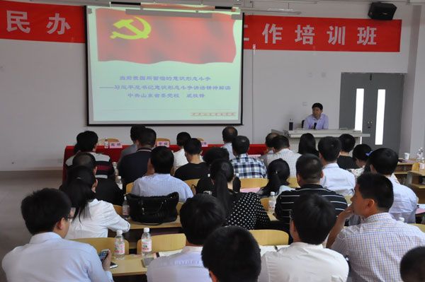 青岛市委高校工委副书记李岷在讲话中强调了民办高校党建工作的重要性并针对民办学校党建工作中存在的问题提出了三点建议。山东省委党校副教授戚桂锋、青岛市委组织部组织一处处长王刚分别作了题为《当前我国所面临的意识形态斗争:习近平总书记意识形态斗争讲话精神解读”》和《解读<发展党员细则>》的报告。