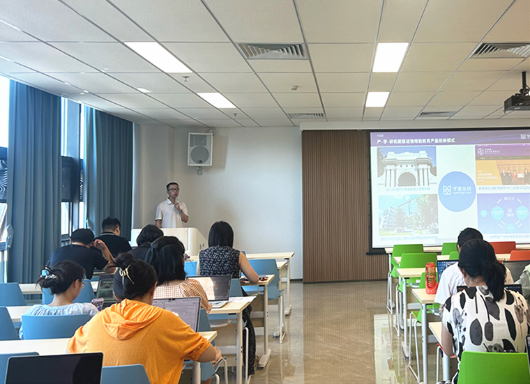 在准备工作与身份绑定环节,详细演示教师账号注册、角色权限配置及多平台数据互通技巧;通过实时问答、匿名调研等功能构建教学反馈闭环;在平台登录与课程建设板块,结合国际商学院课程特色,现场搭建包含课件推送、随堂测试、分组协作的完整课程框架。培训特别设置AI应用讲解专场,许腾老师通过智能学情分析、自动作业批改、虚拟助教等案例,生动展示人工智能如何赋能个性化教学。