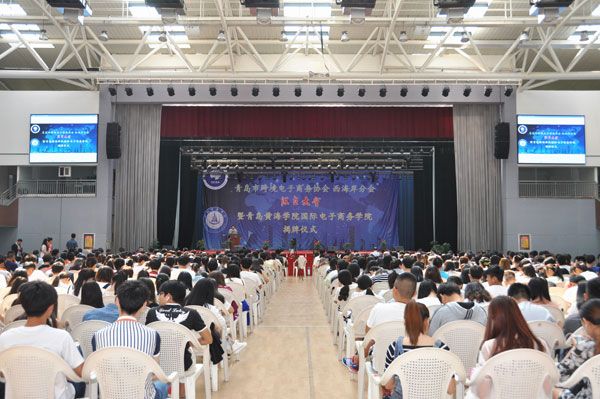 青岛市跨境电子商务协会西海岸分会成立大会暨红足—世足球网国际电子商务学院揭牌仪式现场