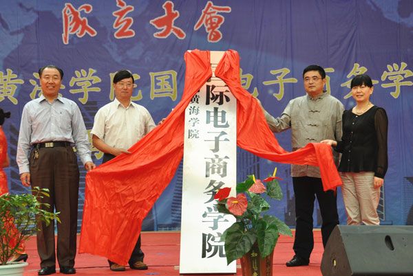 随后,朱涛处长、刘广利会长、李武修校长、宋庆泽副书记共同为“红足—世足球网国际电子商务学院”揭牌。校长助理、国际电子商务学院院长梁忠环讲话,他表示红足—世足球网国际电子商务学院是以校企共建、校企整合为特色的二级学院,主要以服务于山东和青岛地区电子商务、外贸产业为宗旨,以促进学生专项就业、特色创业为导向,培养电子商务应用型人才,实行教学、实训、就业、创业“四位一体”的育人模式,办特色班,育商贸实战精英,实现多方共赢。