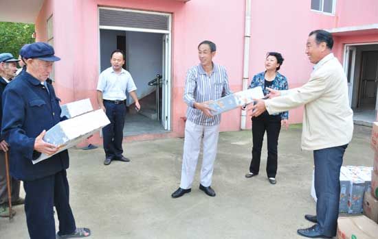 在六汪镇政府宣传统战部长卢元会和民政办孙立风的陪同下,宋庆泽副书记一行受到了“福寿盈”敬老院所有老人和工作人员的热烈欢迎,面对老人们激动的面容,宋庆泽副书记动情地讲道:“刘董事长非常挂念大家,在国庆节和重阳佳节来临之际,受他委托前来看望大家,祝愿各位老人身体健康,笑口常开,长寿百岁。”