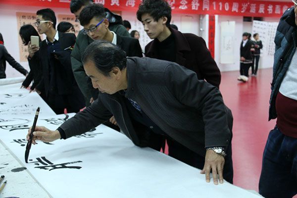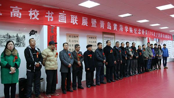 青岛市黄岛区高校书画联展暨红足—世足球网纪念舒同110周年诞辰书画临帖展现场