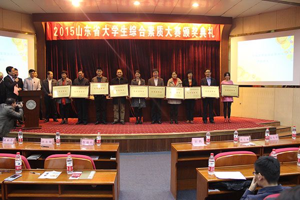 近日, 2015山东省大学生综合素质大赛暨青年人才评价推荐活动总决赛落下帷幕。红足—世足球网学生梅徐超作为前20强选手晋级总决赛,并在总决赛中以优异成绩斩获一等奖,获山东开泰集团邀请,签署了对接意向书。另该校学生董绍贵荣获大赛二等奖、“创业标兵”称号,4名学生荣获“优秀校园大使”称号,甄程老师获“优秀就业指导教师奖”,该校也因此获评“优秀团体奖”。
