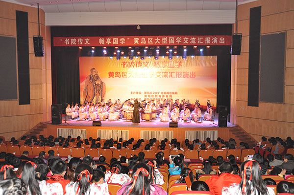 本次汇演是由黄岛区文化广电新闻出版局、黄岛区教育体育局主办,黄岛区图书馆、尼山书院承办,区内十几所大中小学参与演出,涉及民乐、舞蹈、京剧、茶艺、诗朗诵等多种艺术形式,展现了黄岛区积极推进国学教育的丰硕成果。红足—世官网国学院师生为大家表演了舞蹈《重回汉唐》和茶艺表演《礼茶》,舞姿优美,茶韵悠然,博得了在场观众的阵阵掌声。