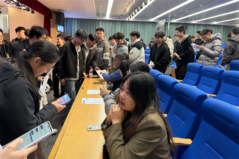 宣讲结束后,企业团队随即组织开展现场面试。同学们积极响应,手持简历有序排队,踊跃与面试官交流,展现出扎实的专业素养、良好的综合素质以及留青发展的强烈意愿。现场气氛热烈,秩序井然。