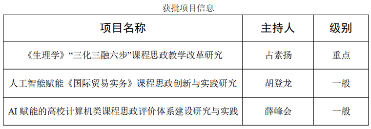此次3个项目的成功获批,是联盟对学校课程思政教学改革研究工作的充分肯定。下一步,学校将按照项目管理要求,加强对获批项目的过程指导与保障,督促项目团队细化研究方案、扎实推进实施,力争形成一批具有创新性、实用性和推广价值的教学成果。