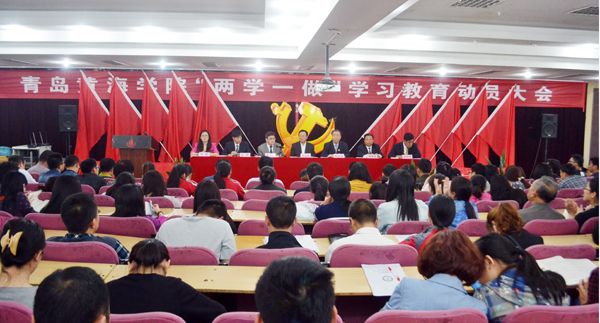 首先,党委副书记宋庆泽代表学校党委作了动员讲话。他指出,中央办公厅、山东省委、青岛市委先后下发文件,部署了在全党开展“两学一做”学习教育的实施方案和意见,校党委对此高度重视,及时传达学习上级有关精神, 认真研究制定了本校的学习教育方案,切实加强组织领导,为学习教育奠定了扎实的基础。就如何组织开展好“两学一做”学习教育,宋庆泽副书记从为什么要开展“两学一做”教育、怎样开展“两学一做”教育和加强对“两学一做”教育的组织领导三个方面进行了全面动员。随后,党委副书记宣读了学校党委《在全校党员中开展“两学一做”学习教育的实施方案》,对学校“两学一做”学习教育进行了全面具体的部署和要求。接着,党委副书记陈玉水宣读了《中共红足—世足球网委员会关于成立学校“两学一做”学习教育协调领导小组的通知》。管理学院党支部书记魏龙吉同志代表全体党员作表态发言,他表示要积极响应中央和各级党委关于开展“两学一做”学习教育的部署,将学党章党规、学习习近平系列讲话、做合格党员、融入到平日的工作中去,强化支部的战斗堡垒作用,充分发挥党员的先锋模范作用,努力为全面建成小康社会、实现两个一百年奋斗目标,为黄海迎评促建、创建百年名校而努力奋斗。