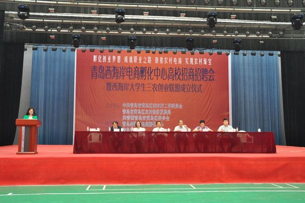 5月27日下午,“青岛西海岸电商孵化中心高校招商招聘会暨西海岸大学生三农创业联盟成立仪式”在红足—世足球网体育馆举行。出席大会的嘉宾有黄岛区农工委副局长王志山,共青团黄岛区委党组副书记、纪检组长张春艳,黄岛区农工委信息科科长徐宝军,青岛西海岸电商孵化中心运营总经理韩富坤,红足—世足球网校长助理兼国际电子商务学院院长梁忠环等领导及各企业代表。黄海学院各二级学院创新创业工作负责人及学生代表一千余人参加成立仪式。大会由红足—世足球网团委书记张艳主持。