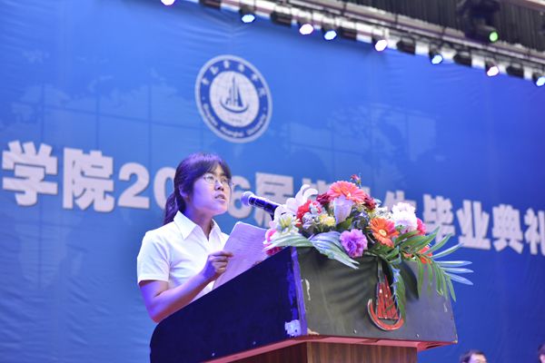 建筑工程学院崔铧元同学代表毕业生发言,她代表2016届全体同学感谢母校和老师的悉心教导和精心栽培。财经学院贾月同学代表在校生发言,向即将离开母校的学长学姐们表示最衷心的祝贺和祝愿。机电工程学院李媛媛老师代表毕业班教师发言,祝愿同学们在新的人生道路上事业有成、捷报频传。