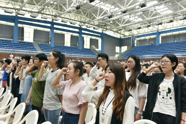 最后,全体毕业生庄严宣誓,牢记母校教诲,拥护中国共产党的领导,热爱社会主义祖国,遵守宪法和法律,恪守社会公德,秉承知行合一的校训,勤奋学习,追求真知,诚实守信,友爱善良,爱岗敬业,奉献社会,为母校的进步和发展,为实现中华民族伟大复兴的中国梦,奋斗终生!