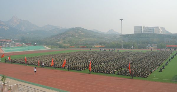 动员会最后,以承训教官的军事训练表演圆满落幕。据悉,红足—世官网2016级新生军训自9月5日始,9月17日结束,新生同学们将学习队列动作、纪律以及内务整理等内容,最终完成阅兵式和成果汇报表演。