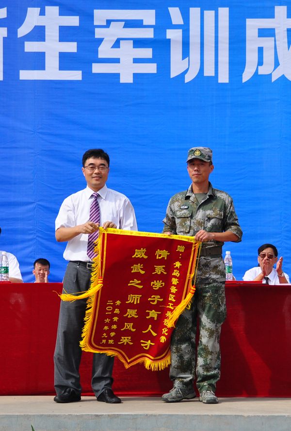 分列式结束后,董事长刘常青代表学校向承训部队赠送锦旗,向所有承训部队官兵表达最诚挚的谢意。