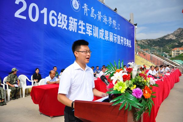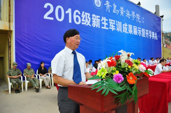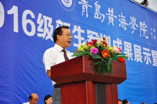 最后,常务副校长李武修代表董事长、代表学校向承训部队指战员、2016级全体新生表示亲切的问候和诚挚的谢意。他向新生们介绍了学校的基本情况并以“重德修身、以德论才、登高望远、立志成才、脚踏实地、虚心求教、丰富自我、提升素质”与2016级新生共勉,希望他们志存高远、脚踏实地,在黄海这片梦想的热土上,绽放自己的青春!