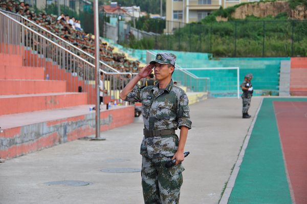 典礼在雄壮的国歌声中拉开帷幕。随后,在军训团团长郑超的陪同下,常务副校长李武修检阅了参训方队,并向2016级参训新生致以亲切的问候,同学们则用响亮的呼声予以回应。经过为期两周的军训,参训新生们斗志昂扬、精神饱满、军姿威武。盛大而精彩的分列式表演随后开始,受阅方队踏着进行曲的节拍,迈着整齐的步伐,喊着嘹亮的口号,自信满满地从主席台前走过,向人们展示着他们的飒爽英姿。