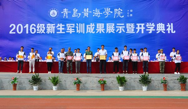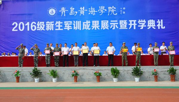 在2016级新生军训工作中受到表彰的先进个人和集体代表上台领奖