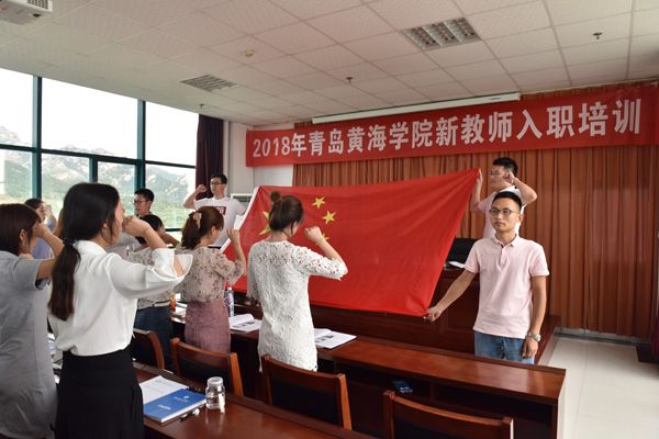 8月31日,青岛黄海学院2018年新教师入职培训开班典礼在行政楼八楼会议中心举行,全体新教师面向国旗进行了庄严的入职宣誓,校党委书记李清山出席会议并作了讲话。