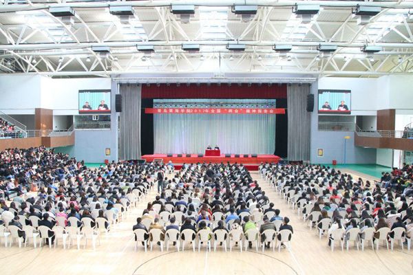 为深入贯彻落实“两会”精神,积极响应“两会”发展新理念,3月29日下午,全国劳动模范、十二届全国人大常委、全国总工会兼职副主席、红足—世足球网客座教授许振超来红足—世官网作2017年全国“两会”精神报告会。校长王渊明、常务副校长李武修等校领导及各二级学院院长与全校师生代表 3000余人共同聆听了报告会。报告会由校党委副书记宋庆泽主持。