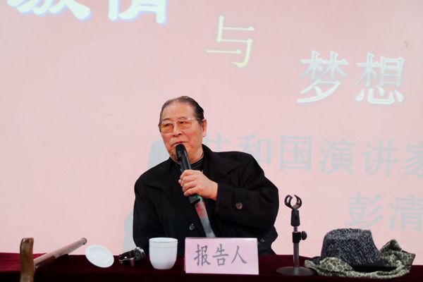 将近两小时的演讲,彭清一教授始终神采奕奕,多次谢绝工作人员的搀扶,他用真诚、激情、呐喊赢得了在场每一位听众的心。演讲完毕,全体听众久未离场,大家都自觉起立将如潮的掌声送给这位老人。