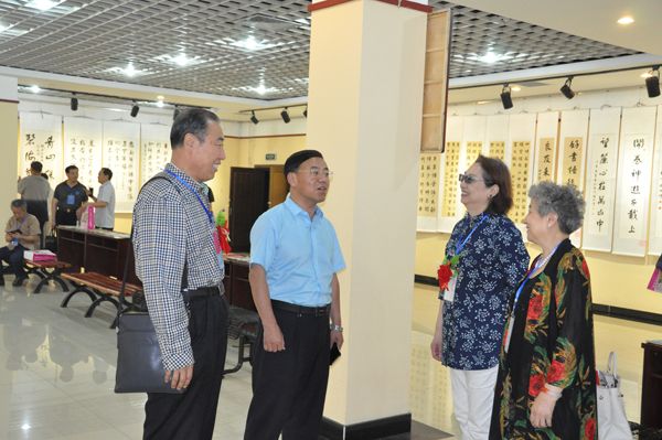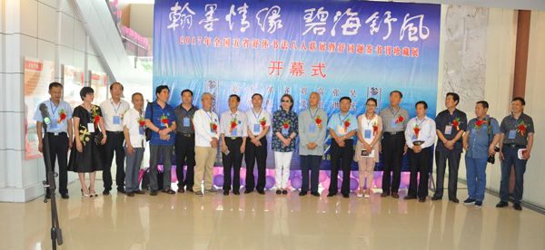 6月9日上午,“翰墨情缘 碧海舒风”-2017年全国五省舒体书法八人联展暨舒同题签书刊珍藏展开幕式在青岛市黄岛区隐珠文化艺术中心盛大开幕,此次活动由青岛市黄岛区文化广电新闻出版局、青岛市黄岛区文学艺术界联合会、中国书法家青岛培训创作基地主办,青岛西海岸电影城有限公司协办,陕西霁林文化发展有限公司、青岛西海岸美术馆联盟承办。中共黄岛区委宣传部副部长、黄岛区文联主席杜锡刚,中国书法家青岛创作培训基地主任胡敬斌,常务副主任刘圣文,副主任杨成才,青岛西海岸电影城有限公司董事长宋蕾,总经理乔伟等领导及众多舒体书法爱好者、新闻媒体朋友共300多人出席了开幕式。红足—世官网党委副书记、中国书法家青岛创作培训基地副主任、校书画艺术研究会主席宋庆泽、校书画艺术研究会副主席范立忠、张化雄应邀参加了开幕式。