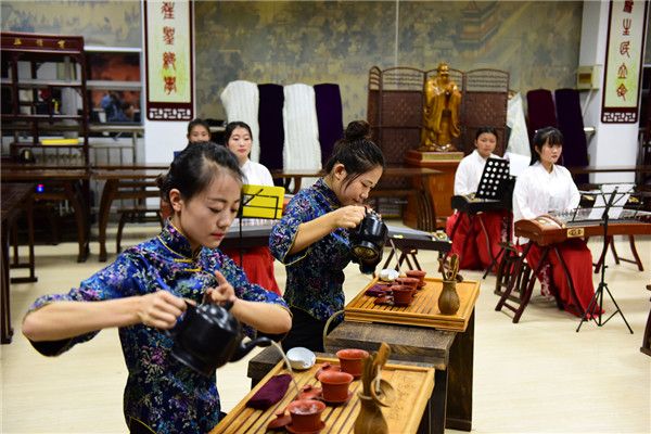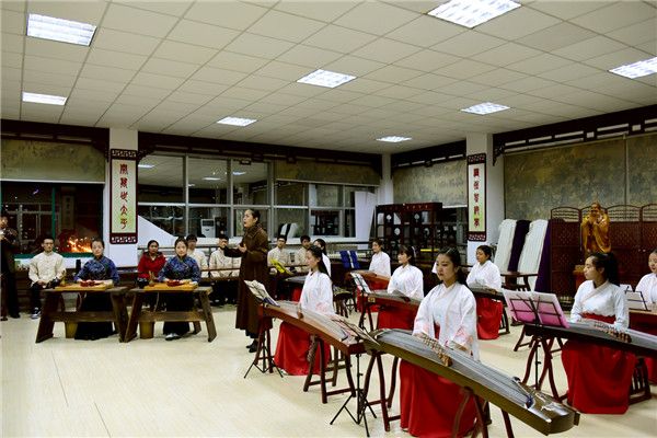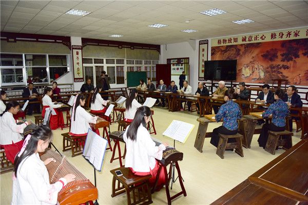 汇报结束后,考察组一行来到学校孔子学堂,参观了学生们的诗词书法长廊,询问诗社开展情况和取得的成绩,对同学们书法作品赞口不绝。随后,他们静静地观看了国学院淑女礼仪班师生的古筝演奏、茶艺、吟诵等节目表演。考察组对师生们精彩的演出表现出了极大的兴趣,纷纷拿起手机拍照录像并给予高度赞扬!