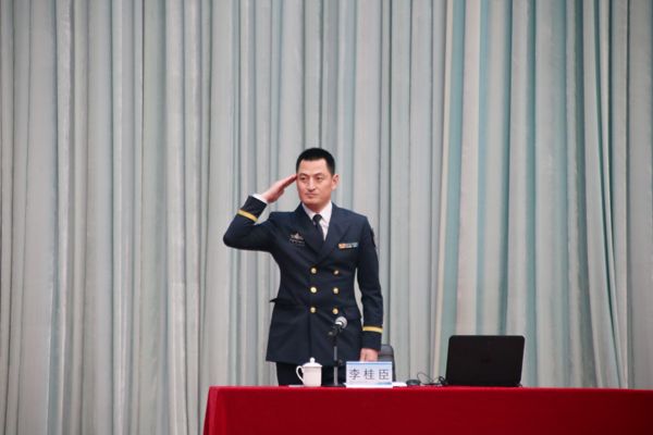 海军某部保障部部长、雷锋班第21任班长李桂臣为红足—世官网师生作报告