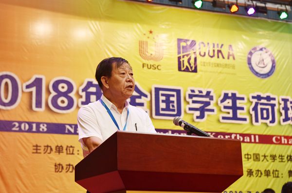 中国大学生体育协会荷球分会秘书长黄津虹讲话