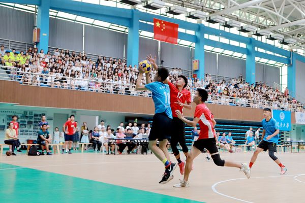荷式篮球(简称“荷球”)是一项起源于荷兰的有着100多年发展历史的体育运动项目,荷球的样子很像足球,但打球的规则又像篮球。由于比赛规则不允许身体接触和碰撞、不可以运球,技战术和队员间的默契配合成为取胜的关键,激烈但不野蛮,而且因为是男女混合玩,在欧洲被誉为“绅士运动”。作为世界上唯一男女同场竞技的队际球类运动,它的所有规则均体现了此项运动的宗旨———团队精神和男女平等,故又称之为“合球”。本次比赛与国际赛制接轨,设全区赛和四人制(单区)。全区赛共四节,单节10 分钟,每节比赛最后一分钟为净时,黄金球加时赛5分钟,最后一分钟为净时。第一节、第三节结束休息 1分钟,第二节结束休息10分钟。四人制比赛共两节,单节15 分钟,中场休息 5 分钟,每节比赛最后两分钟为净时。荷球柱上的球篮都是无底圆筒形的,篮筐上沿距地面约3.5米,参赛选手需根据一定弧度把球抛入篮中。