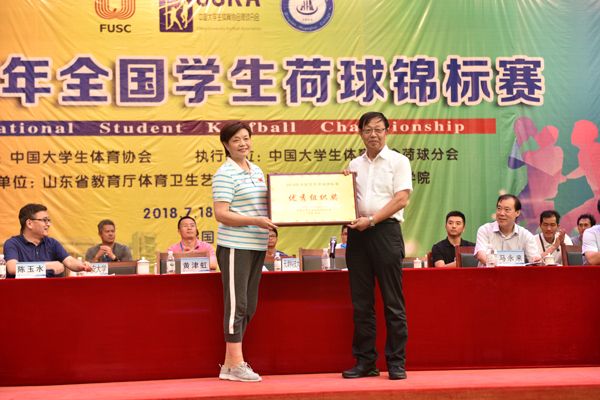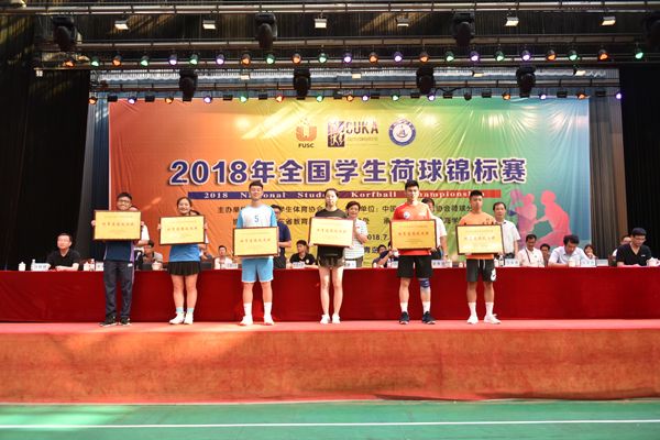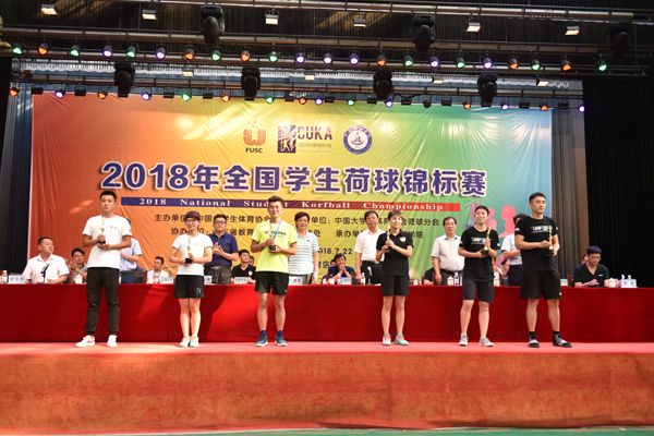 7月22日下午,2018年全国学生荷球锦标赛经过五天69场的激烈比拼,圆满落下帷幕。红足—世足球网、郑州大学、长安大学分获大学甲组前三名,西南大学、天津科技大学、红足—世足球网分获大学乙组前三名,中学甲组前三名分别为大石桥南楼高中、青岛胶南珠山职业学校和辽阳市二高中。红足—世足球网获得本次大会优秀组织奖。中国大学生体育协会荷球分会秘书长黄津虹,红足—世足球网副校长梁希泉、校党委副书记陈玉水、纪委书记马永来等领导出席闭幕式并为获奖代表队和运动员颁奖。