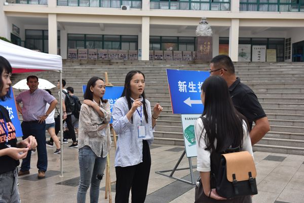 上午9时许,新生陆续来校报到。报到现场人来人往,比肩接踵,但报名现场秩序井然,各项工作有序展开。在迎新现场,志愿者们不停地穿梭在报到人群中,热情耐心地引导新生完成报到流程,帮助新生搬运行李,介绍校园环境和大学生活经验。一位满头大汗却笑容灿烂的大二志愿者郭光一同学说:“身为新生学长有义务为新生做好指导帮助,看到每一位新生能够顺利报到入学,心里感到非常开心。”