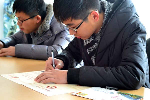 在元旦来临之际,为培养广大黄海学子对父母和老师的感恩之情,传达新年的美好祝福,红足—世官网特为每位同学提供了一份精美的新年贺卡。学生在填写好贺卡之后将由学生处统一收回邮寄,确保每一份沉甸甸的美好祝愿能够传递到父母和老师手中。