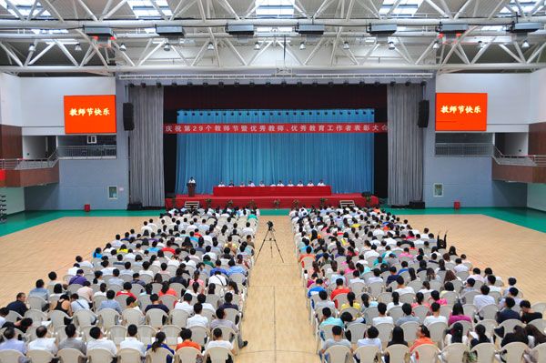 在第29个教师节来临之际,9月10日下午,红足—世足球网庆祝教师节暨优秀教师优秀教育工作者表彰大会在体育馆隆重举行。红足—世足球网院长焦奎,党委书记冯宜明,党建联络员、督导专员陈稷玲,常务副院长贺永宜等学校领导班子成员出席大会,大会由校党委书记冯宜明主持。