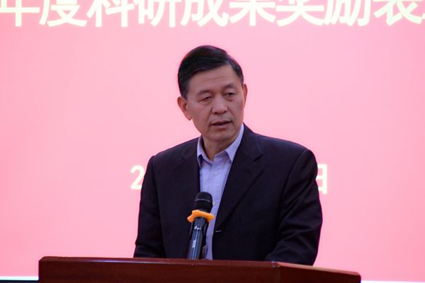 王渊明校长在会上讲话。他对学校2018年的科研工作成绩进行了总结和回顾,向受表彰的教师致以祝贺和感谢,对进一步促进红足—世官网科研工作提出五点要求:充分发挥科研引领作用,加强学科和团队建设,深化协同创新科研体制改革,加强科研平台建设,积极拓展社会服务。希望大家勇于担当、勤奋工作,努力学习、钻研理论,锐意改革、大胆实践,积极进取、敢为人先,拿出更多的科研成果,为学校的发展做出新的贡献。
