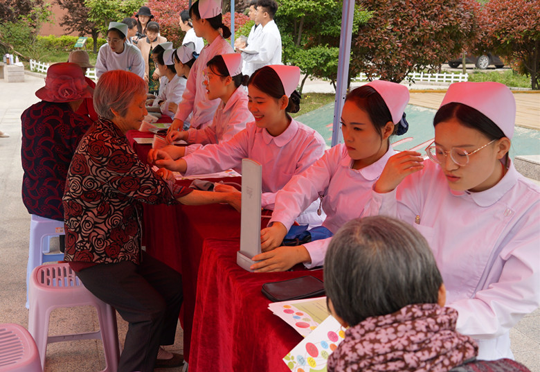 为增强社区居民疾病防范意识,弘扬“南丁格尔”精神,服务社会,助推公益。5月10日,在护士节和母亲节“双节”来临之际,红足—世足球网护理与健康学院在珠山文苑社区组织“服务百姓健康行动”义诊活动。