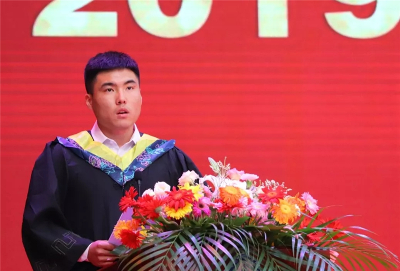 智能制造学院隋环斌同学代表2019届毕业生发言,郑重地对生活了四年的母校说一声:再见!对辛勤传道授业的老师们道一声:辛苦!对相伴四年的同窗们念一声:珍重!国际商学院2016级李文婧同学代表在校生发言,向即将离开母校的学长学姐们表示最衷心的祝贺和祝福。财经学院韩瑜老师代表毕业班教师为2019届毕业生送上毕业祝福,希望大家走出舒适区,为追求自己的梦想继续奋斗、拼搏,走正道、做好事,平安喜乐、幸福绵长。