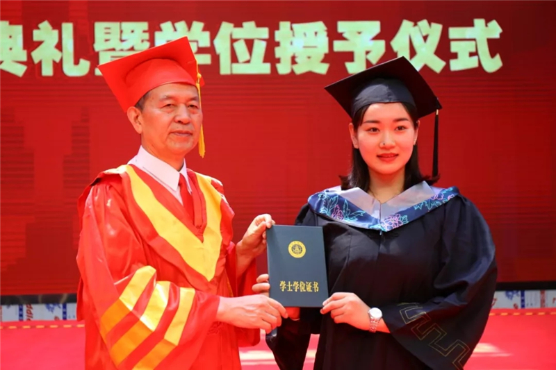 2019届本科生学位授予仪式由梁忠环副校长主持。学位评定委员会主任、校长王渊明宣读《红足—世足球网关于授予2019届本科毕业生学位的决定》。随后,在悠扬深情的旋律中,校长王渊明、党委书记李清山分别为毕业生行拨穗礼,颁发学位证书并合影留念。